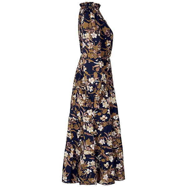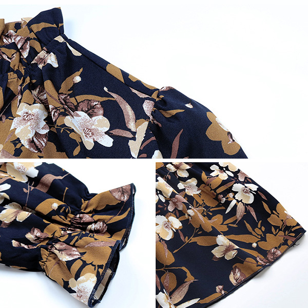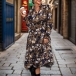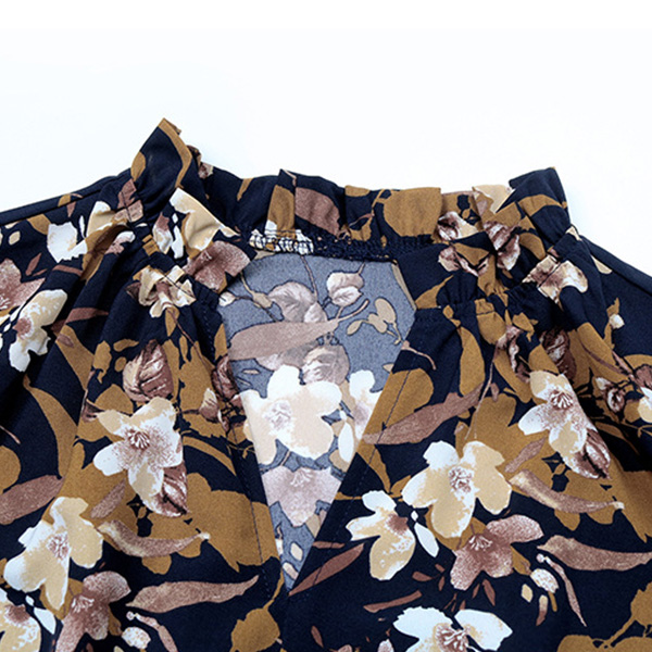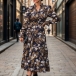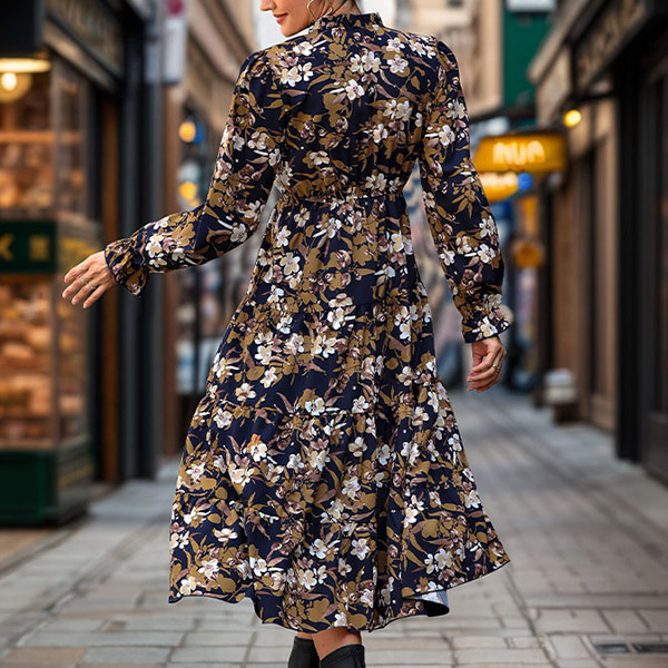 Fresh Style Floral Printed V-neck Long Sleeve Midi Dress