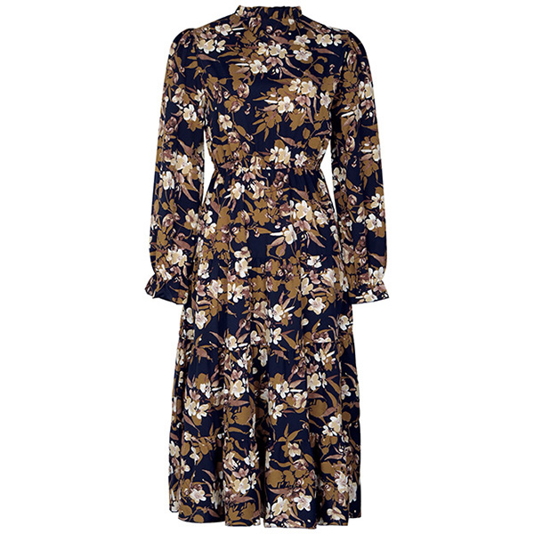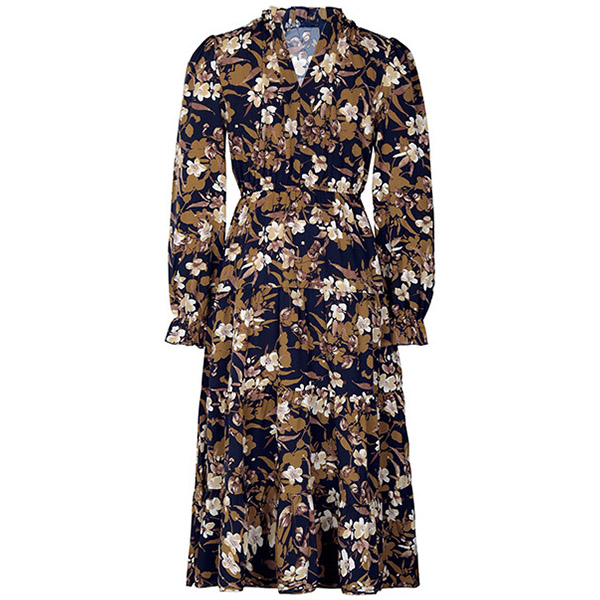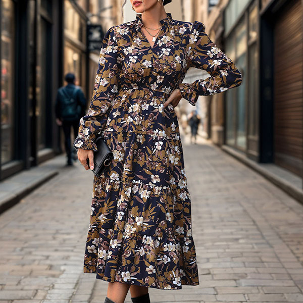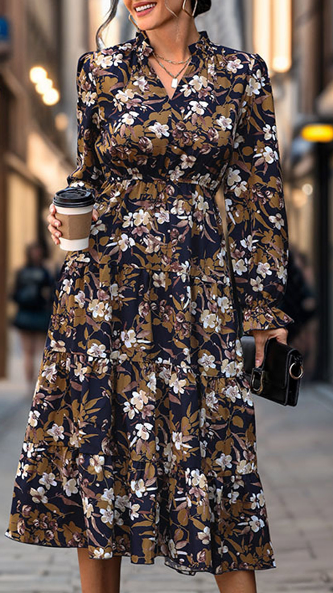 This midi dress features a floral print, a V-neckline, and long sleeves, creating a chic and feminine look. Pair this dress with sandals or heels for a stylish and put-together ensemble. Hope you like it.