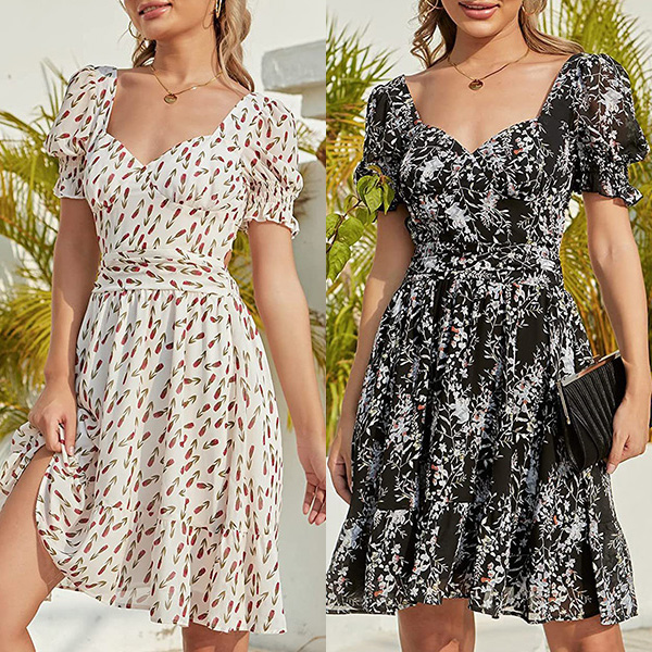 This mini dress features a vibrant floral print, adding a touch of freshness and femininity. The puff short sleeves add volume and a playful element to the dress, bringing a touch of romantic flair. The criss-cross backless design adds an eye-catching detail and a hint of allure to the overall look. Crafted from high-quality materials, this dress ensures comfort while maintaining its fashionable appeal.