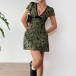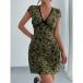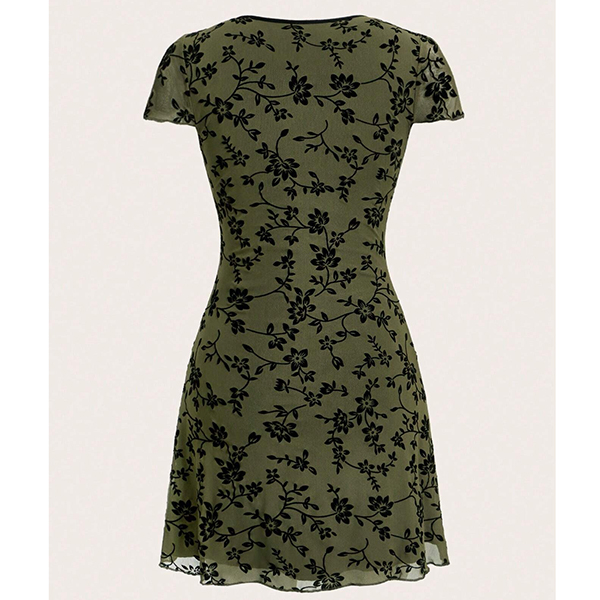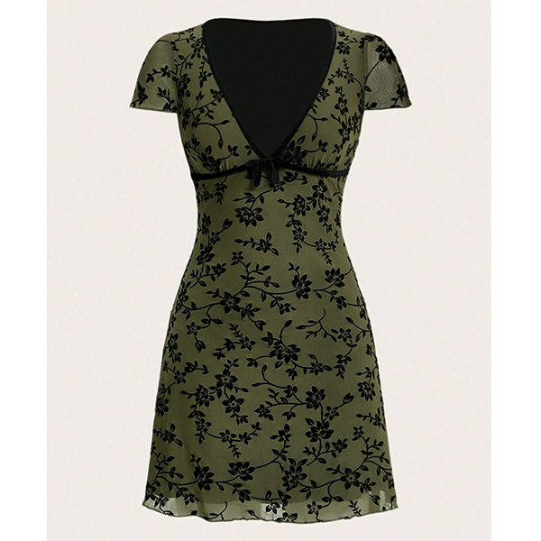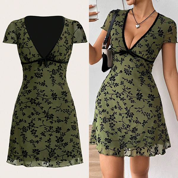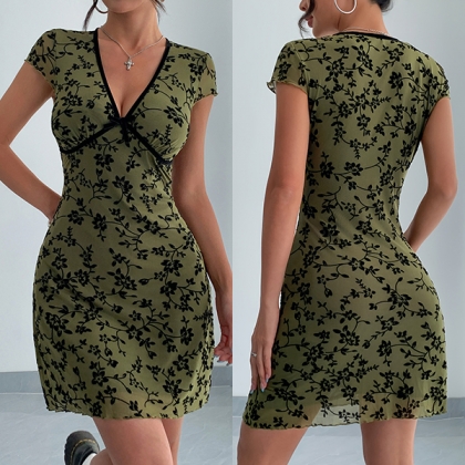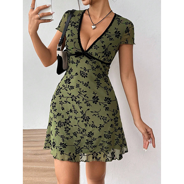 Fresh Style Floral Printed V-neck Short Sleeve Mini Dress