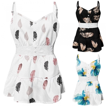 Fresh Style Floral Printed V-neck Sleeveless Cami Dress