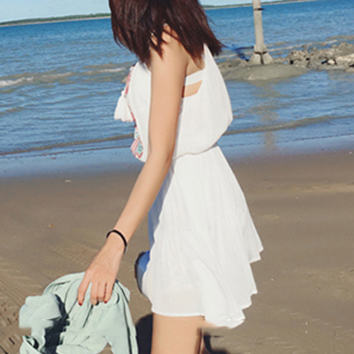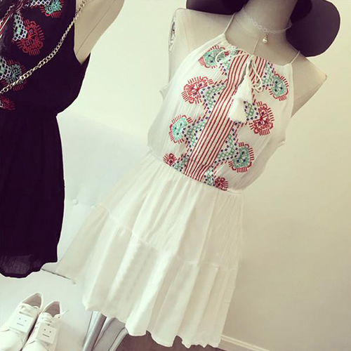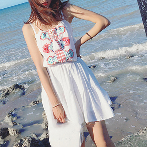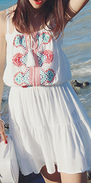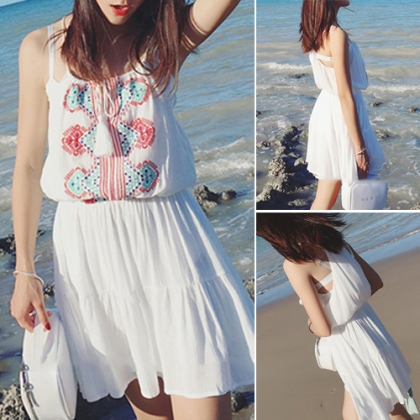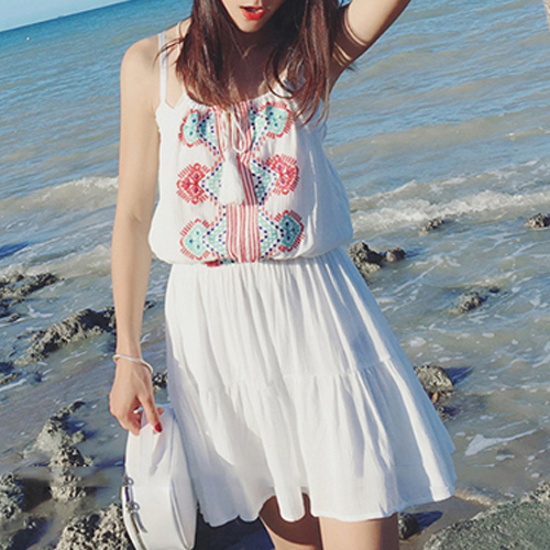 Once wear it,an effortless charming look is easy to achive. Sling style,front with embroidered