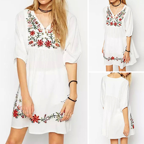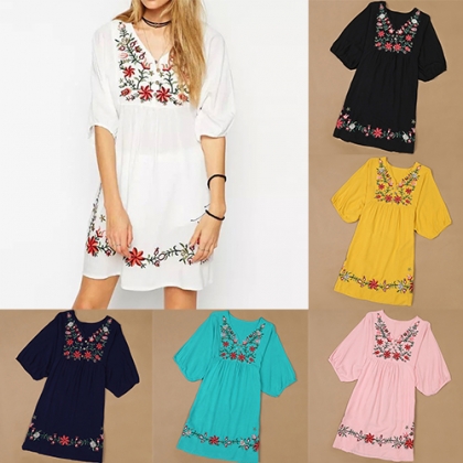 with short sleeve,v-neck and a relaxed-fit silhouette,this dress can promise you a comfortable day. On the other hand,