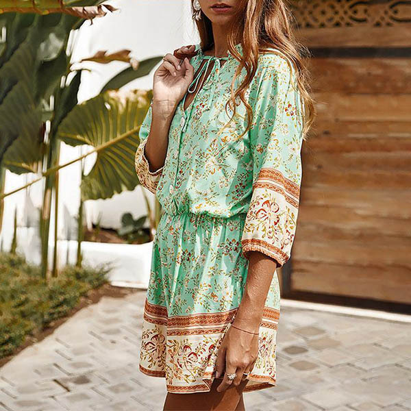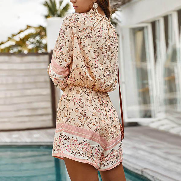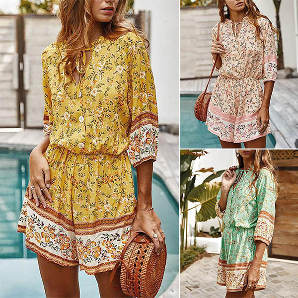 As for a fresh and sweet summer style,you can turn to this romper for help. The vibrant floral print details make this piece look so eye-catching and stylish. Finished with half sleeve and v-neck design,this wonderful piece can maintain the comfy while it exudes your style and personality.