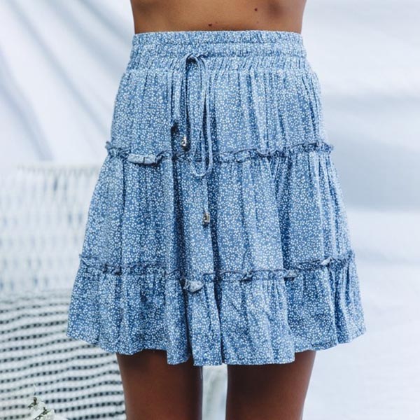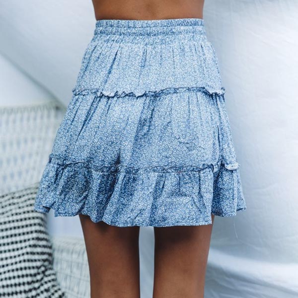 Fresh Style High Waist Ruffle Hem Printed Skirt