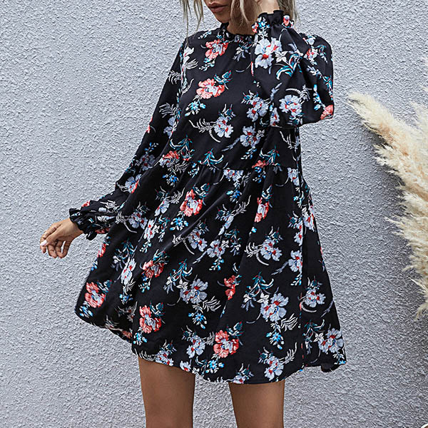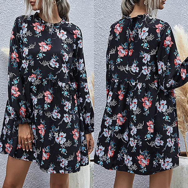 As for a fresh and sweet daily style,you can just have a try this dress. Features vibrant floral print details,with long sleeve,round neck and a loose silhouette,this dress not only can give you a comfortable day,but also can be fit for different occasions. So why not take interest in it?