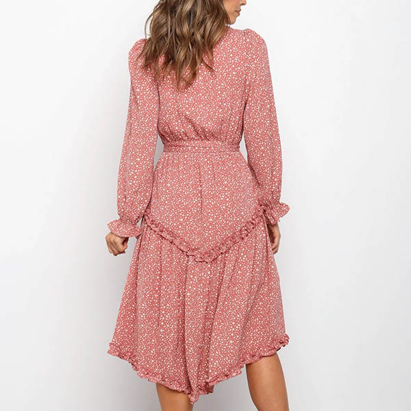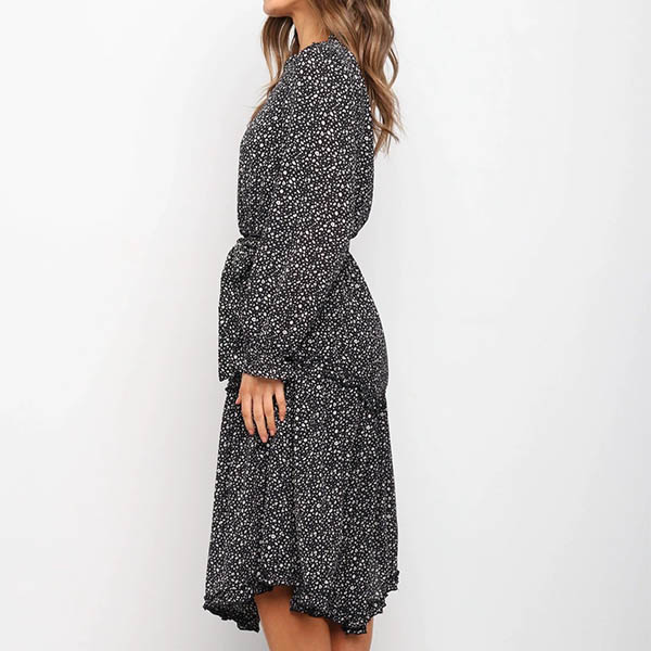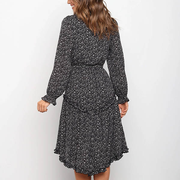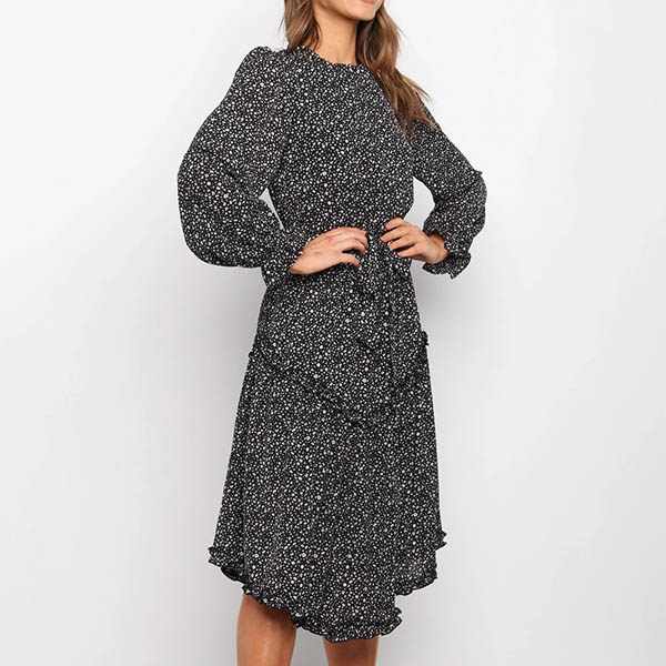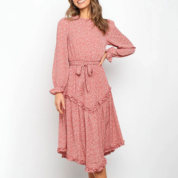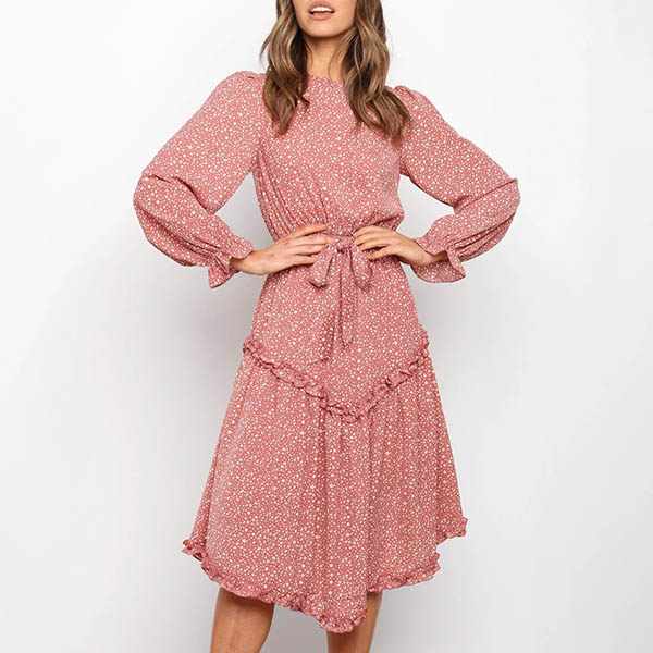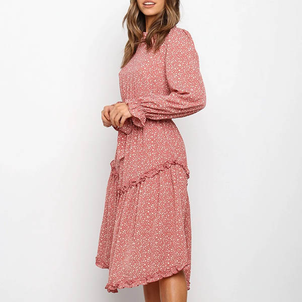 You don't need to wonder why all eyes are on you when you don this dress! It features vibrant floral print details,which make this piece look more eye-catching. Finished with long sleeve,round neck and ruffle design,this beautiful dress is just the thing you need for your night dating and weekend gatherings.