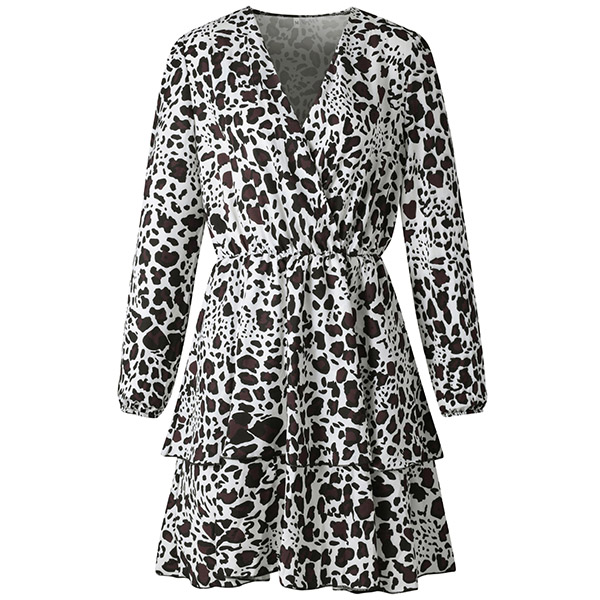 Fresh Style Long Sleeve V-neck Dual-layer Hem Printed Dress