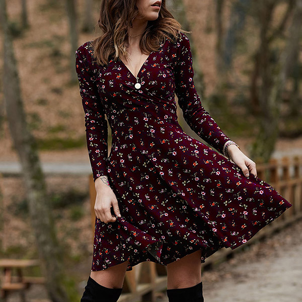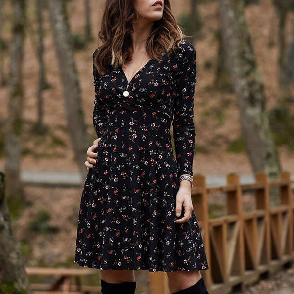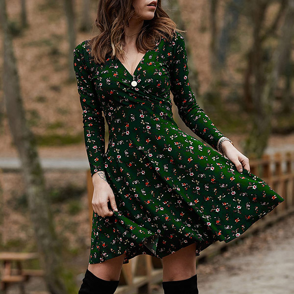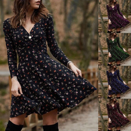 As for a fresh and sweet daily look,you can just throw yourself into this beautiful dress. Features colorful and vibrant floral print details,finished with long sleeve,v-neck and high waist design,this dress not only can showcase your slender figure,but also can give you the chance to express your beauty and charm.