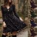 Fresh Style Long Sleeve V-neck High Waist Printed Dress