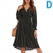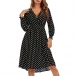 Fresh Style Long Sleeve V-neck High Waist Printed Dress