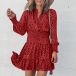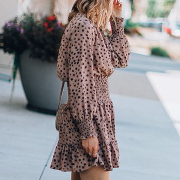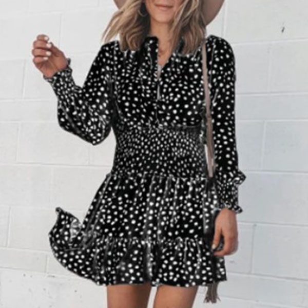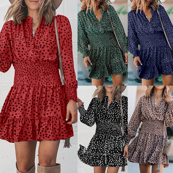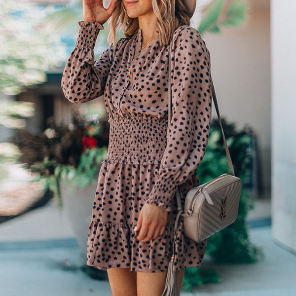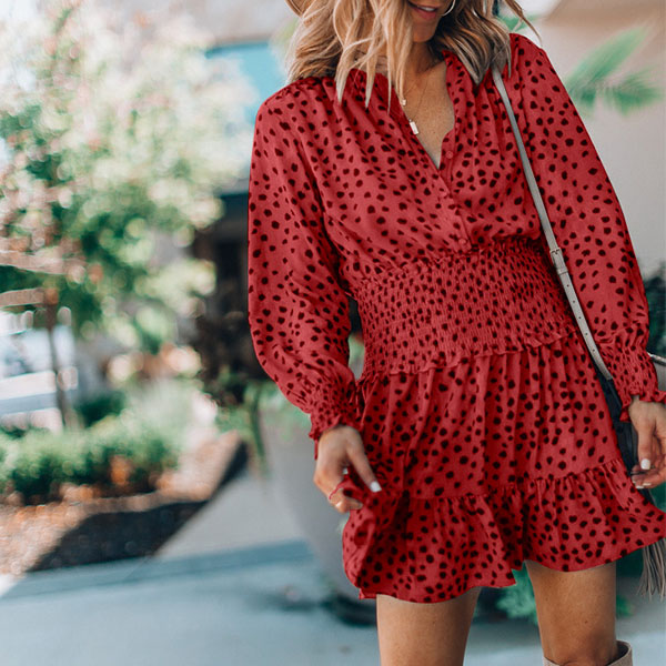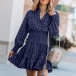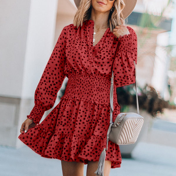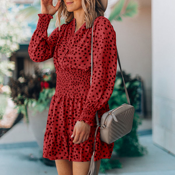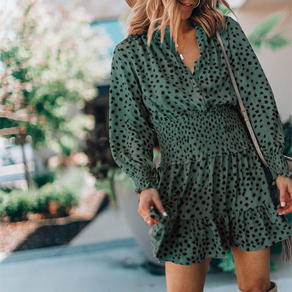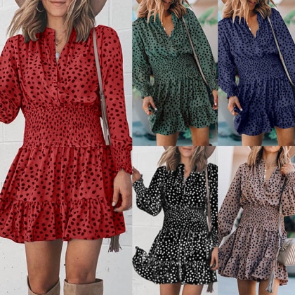 It is an easy thing to achieve for a fresh and sweet style with the help of this dress. Its chic printed details can help you gain more eyes. Finished with long sleeve,v-neck and high waist design,this dress not only can showcase your slender figure,but also can enhance your charming feminine appeal. So why not take interest in it?