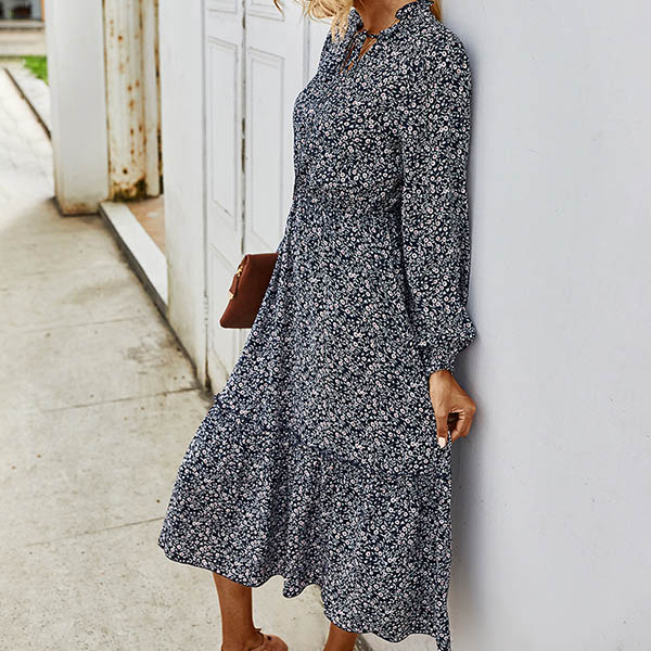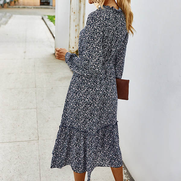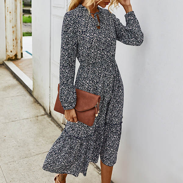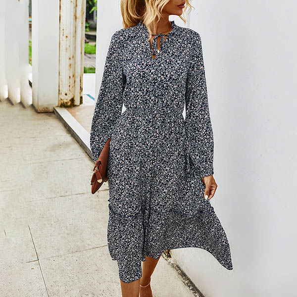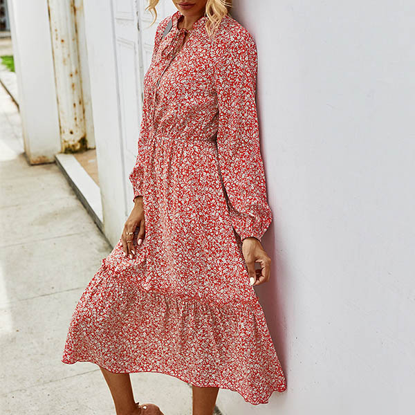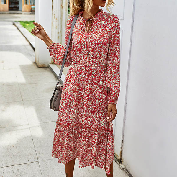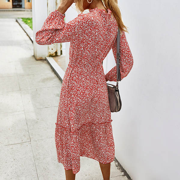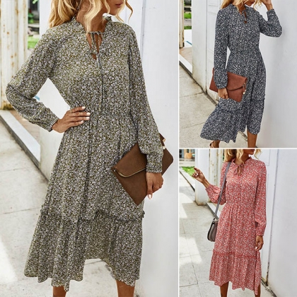 It is an easy thing to achieve for a fresh and sweet style with the help of this dress. Features vibrant floral print details,finished with long sleeve,v-neck and high waist design,this dress can give you a perfect transition from your daytime out to night dating.
