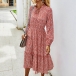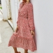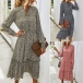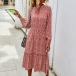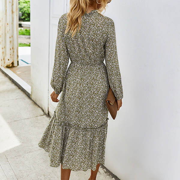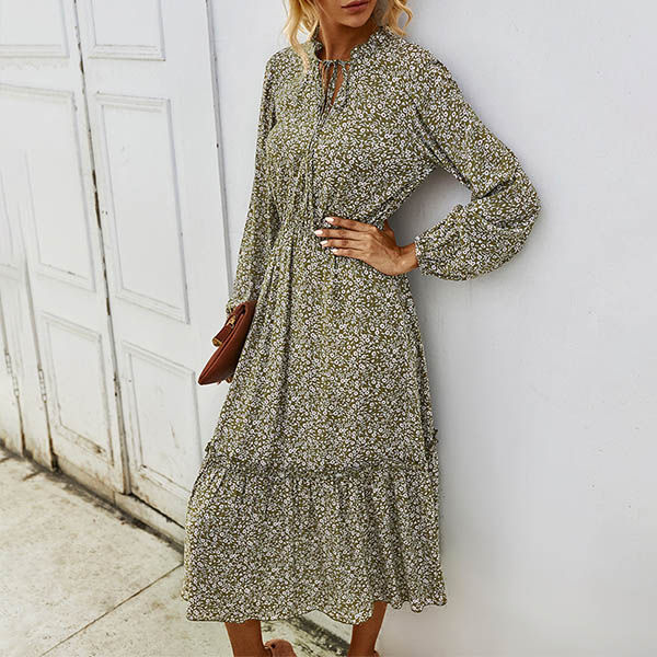 Fresh Style Long Sleeve V-neck High Waist Printed Dress