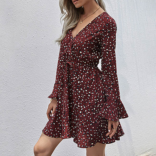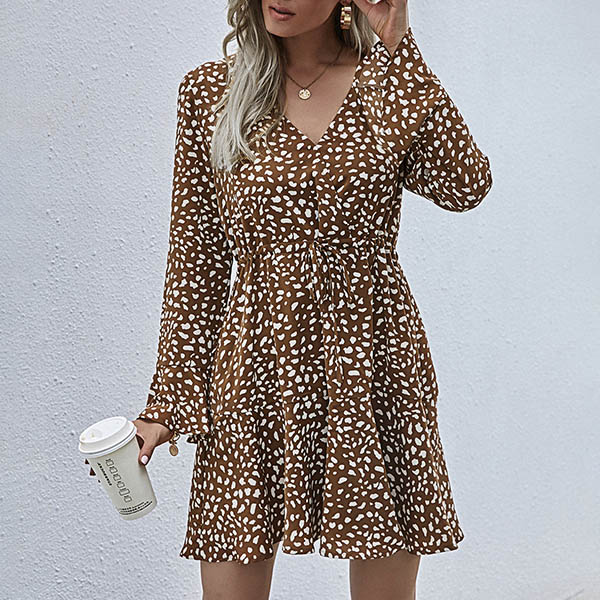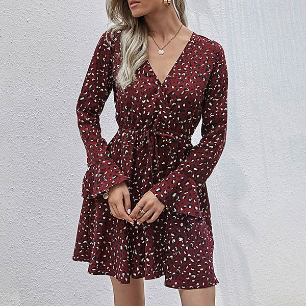 It is an easy thing to achieve for a fresh and sweet daily look with the help of this dress. Its chic printed details make this piece look more eye-catching,while the v-neck design can enhance your feminine appeal. No matter for your daytime out or night dating,you can trust in this dress to look beautiful.