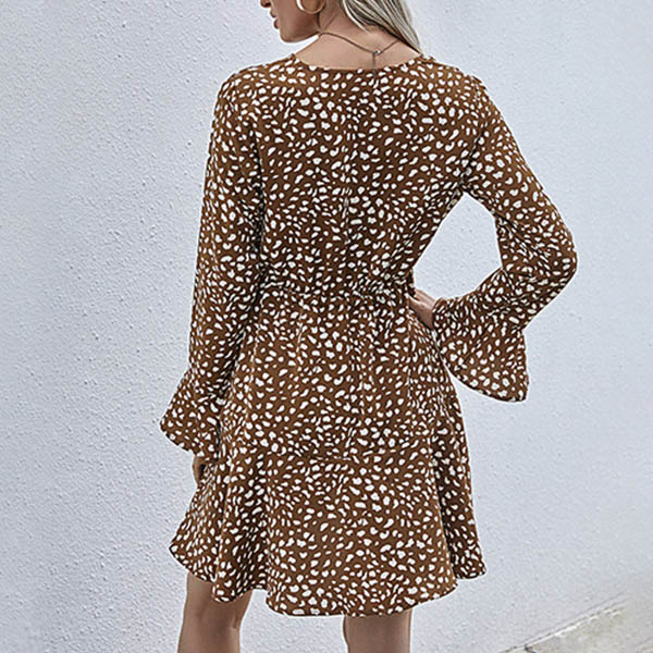 Fresh Style Long Sleeve V-neck Printed Dress