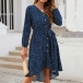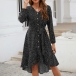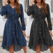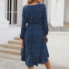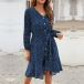 Fresh Style Long Sleeve V-neck Single-breasted Ruffle Hem Printed Dress