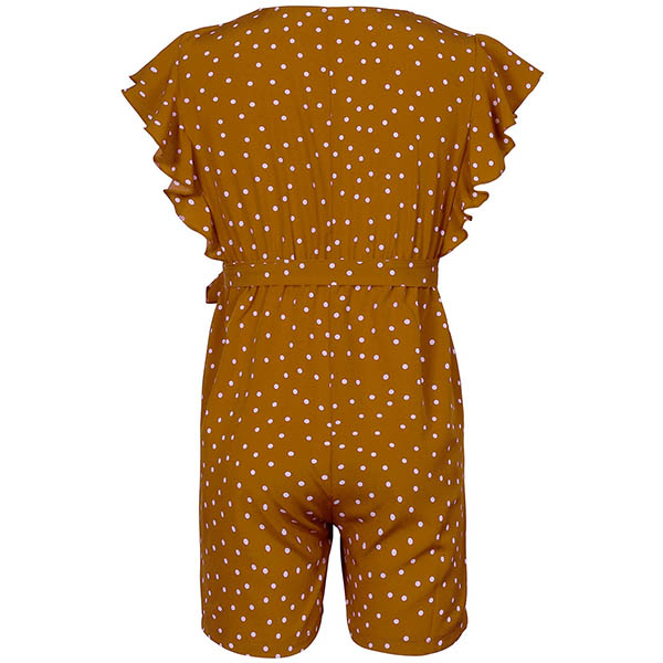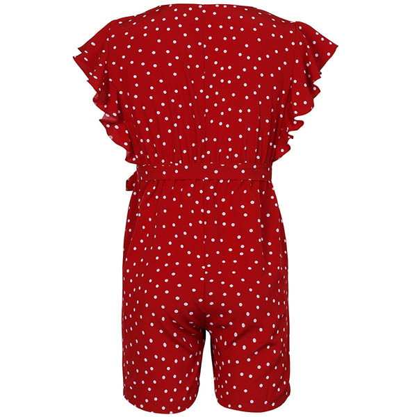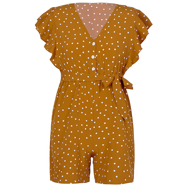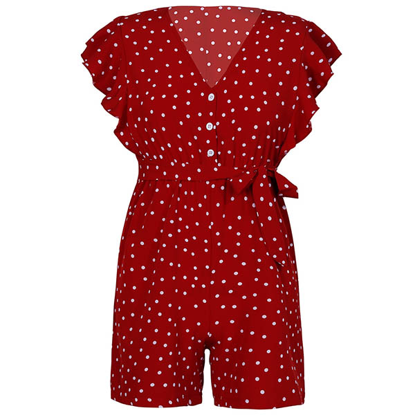 Fresh Style Lotus Sleeve V-neck Dots Printed Romper
