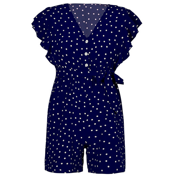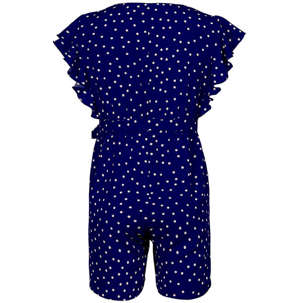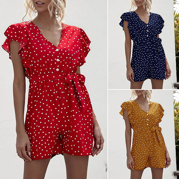 Wanna a fresh and sweet summer style? Then let this romper help you! Designed with chic and playful dots printed details,the v-neck and lotus sleeve design can easily enhance your feminine appeal. When you don't know what to wear,you can just slip into this piece to look effortlessly charming and beautiful!