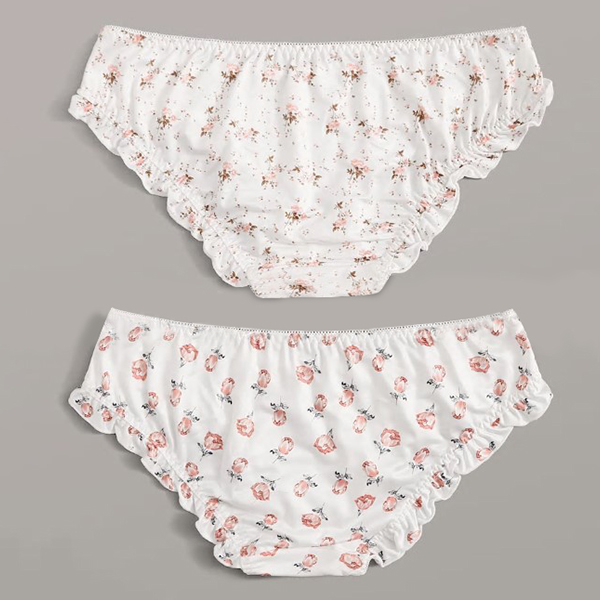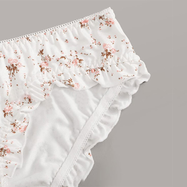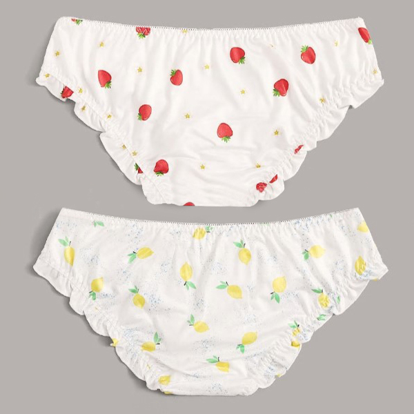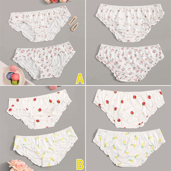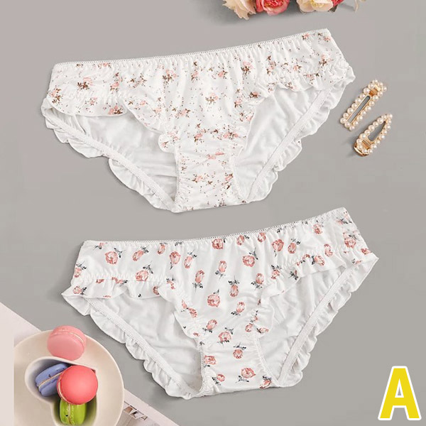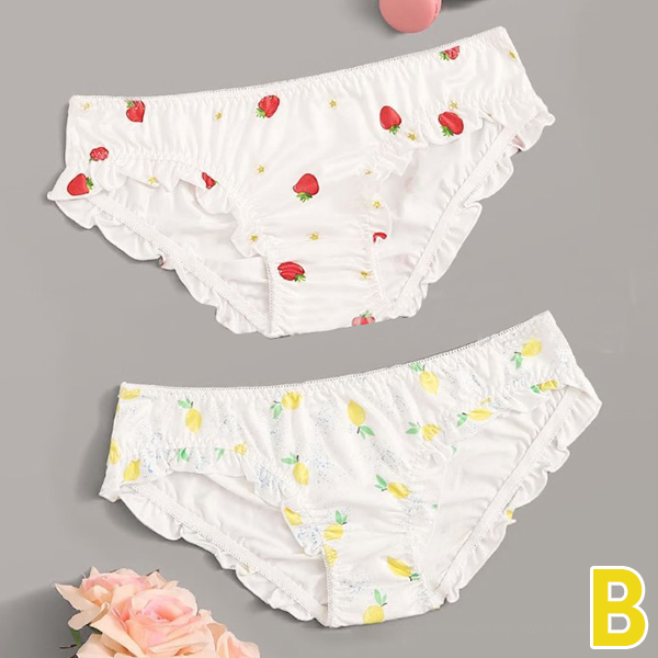 Fresh Style Middle Waist Lace Spliced Printed Briefs SSet 2 pcs/Set