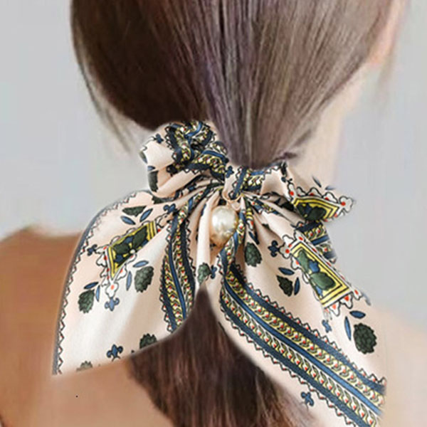 Fresh Style Pearl Pendant Colorful Printed Hairband