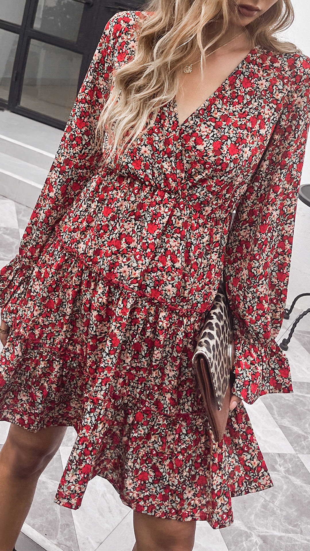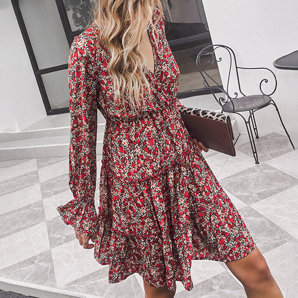 Make your wardrobe more colorful by adding this printed dress. Its vibrant floral print details can help you catch more eyes,while the v-neck,ruffle hem and puff sleeve design can better exude your sweet,sassy and charming sense. No matter for your night dating or weekend out or holiday trips,this beautiful dress cam be your wise choice.
