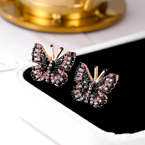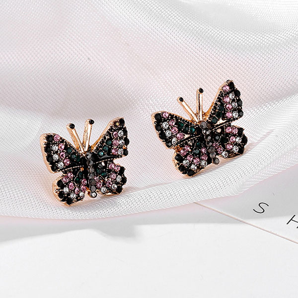 Fresh Style Rhinestone Inlaid Butterfly Shaped Stud Earrings