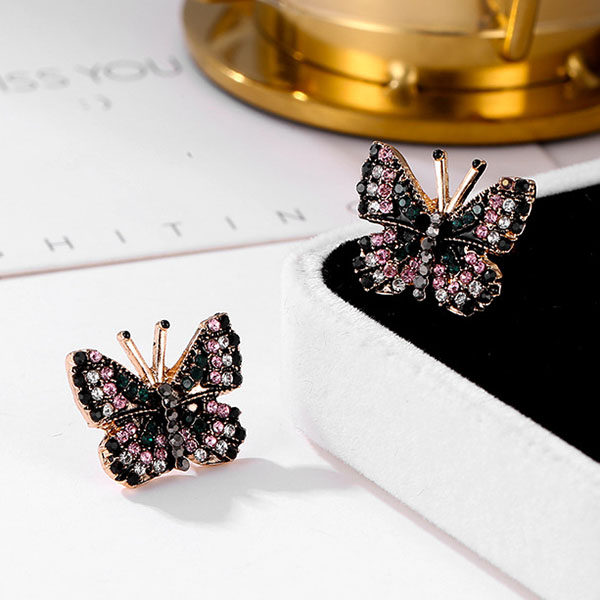 Add a dash of fresh and sweet vibes to your overall look with this paid of stud earrings. Butterfly shaped design,inlaid with rhinestone details,vivid and shinning. A perfect addition for your daily look.