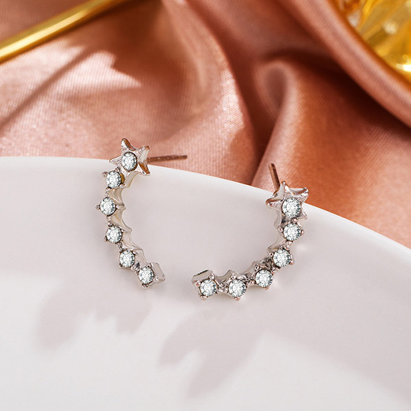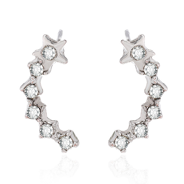 Finish a fresh and sweet style with the help of this pair of stud earrings. The pentagram shape and rhinestone inlaid details make it look so shinning and attractive. Add them to your accessory box!