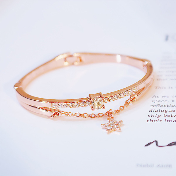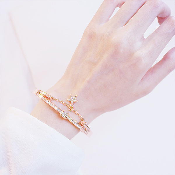 This bracelet is designed with star pendant and inlaid with rhinestone details,which not only can embellish your bared wrist,but also can help boost your entire charm. So why not enrich your accessory box with this little item?