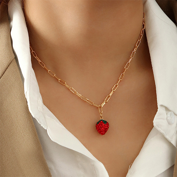 When you wanna showcase your charming neck,then you can consider adding a necklace. This piece is decorated with a strawberry pedant,which makes it full of fresh and sweet vibes. All-match design allows to be matched with different style outfits.