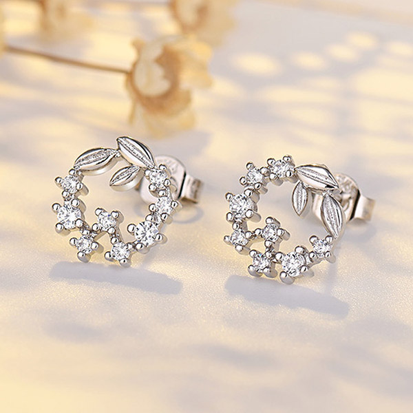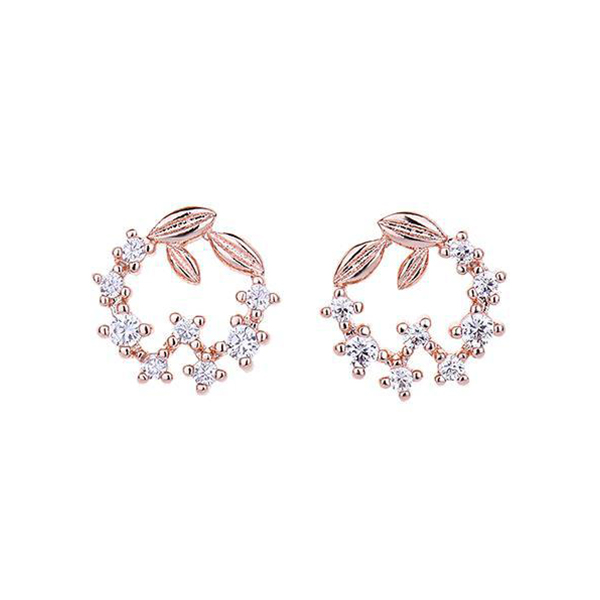 Fresh Style Rhinestone Inlaid Wreath Shaped Stud Earrings