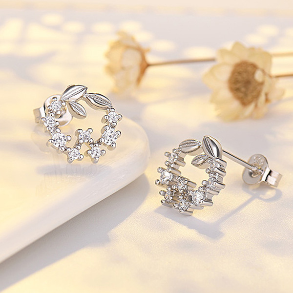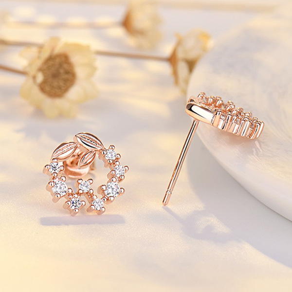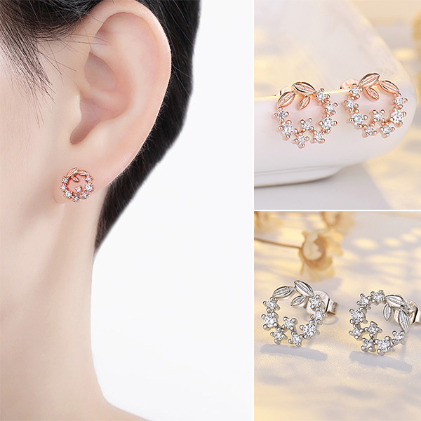 Add a dash of fresh and sweet vibes to your look with this pair of stud earrings. Wreath shaped design,inlaid with rhinestone details,shinning and attractive. Embellish your ears with these little items.