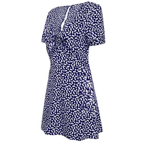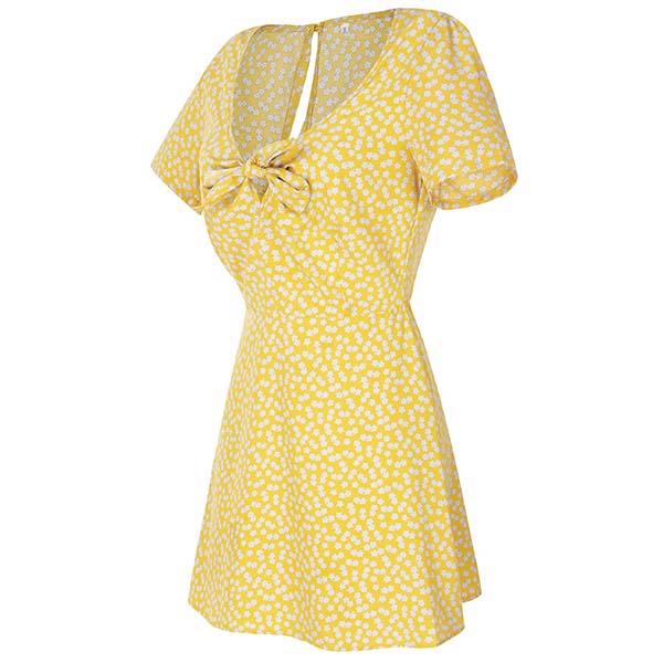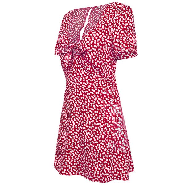 Fresh Style Short Sleeve Knotted V-neck Printed Dress
