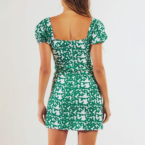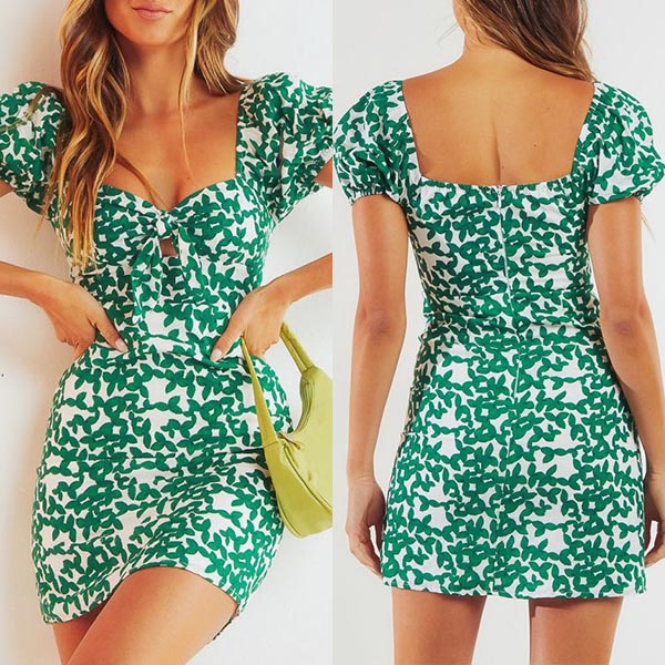 Fresh Style Short Sleeve Knotted V-neck Slim Fit Printed Dress