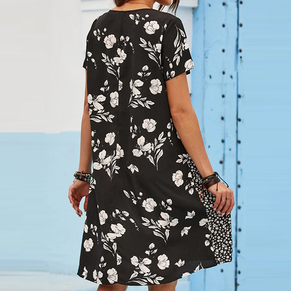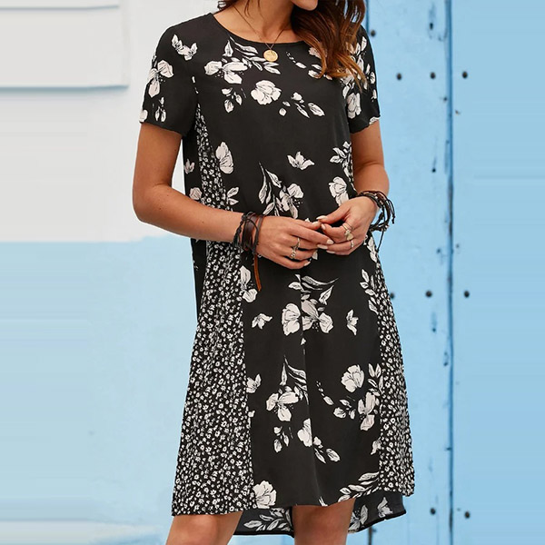 Fresh Style Short Sleeve Round Neck Loose Printed Dress