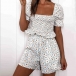 For a fresh and sweet summer style,you can have a try this two-piece set. It consists of a short sleeve square collar top and a high waist shorts,this two-piece set can showcase your charming femininity and style. And the daisy printed details make it look more eye-catching. Start your wonderful day with this two-piece set.