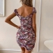 Fresh Style Short Sleeve Square Collar Slim Fit Printed Dress
