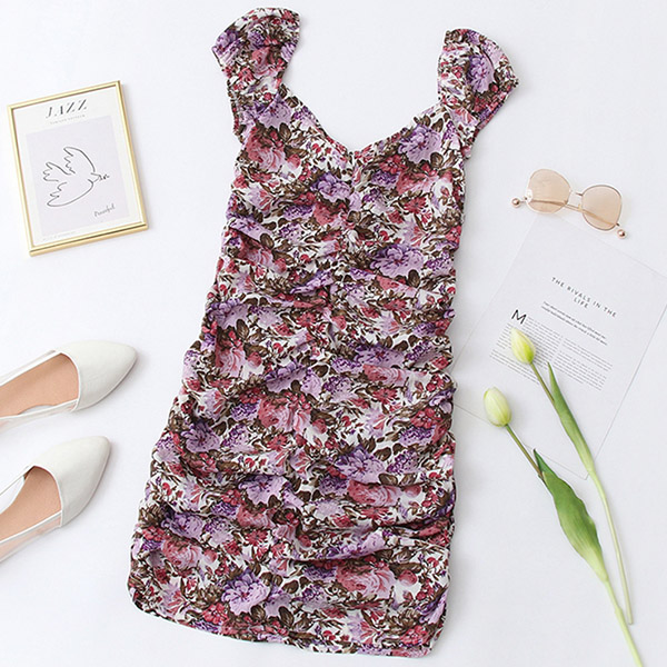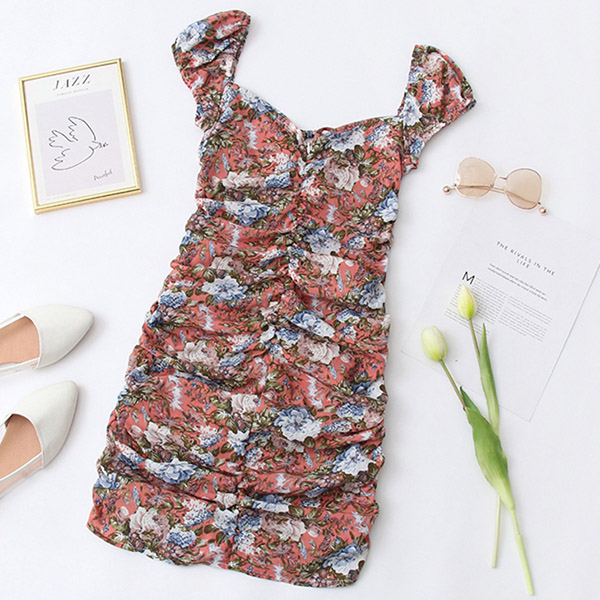 A perfect combination between sultry with a dash of femininity, this dress is truly a pleasant sight to draw more attention. Its vibrant floral print details make this piece look so eye-catching. Finished with short sleeve,square collar and a fit silhouette,this piece not only can showcase your perfect figure,but also can help you catch more eyes.