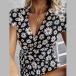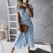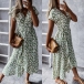 Fresh Style Short Sleeve V-neck Daisy Printed Lace-up Dress