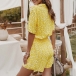 Fresh Style Short Sleeve V-neck High Waist Printed Romper