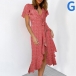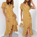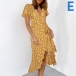 Fresh Style Short Sleeve V-neck Irregular Ruffle Hem Printed Dress