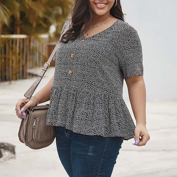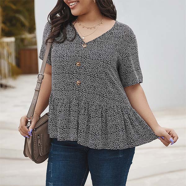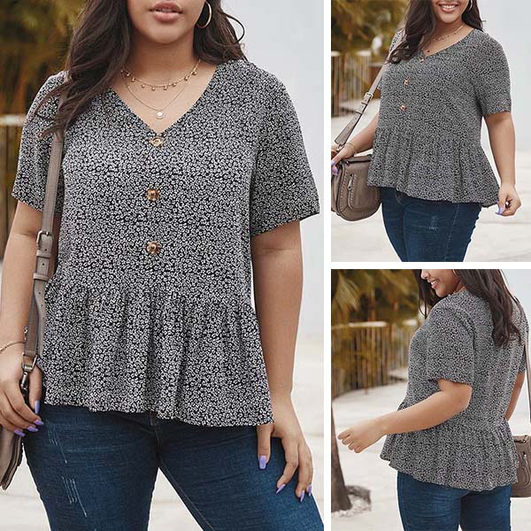 Fresh Style Short Sleeve V-neck Plus-size Printed Top