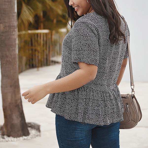 Add a dash of fresh and sweet vibes to your daily look with this wonderful top. It boasts vibrant floral print details,finished with short sleeve and v-neck design,this top can keep you feeling comfy while it maintains your style.