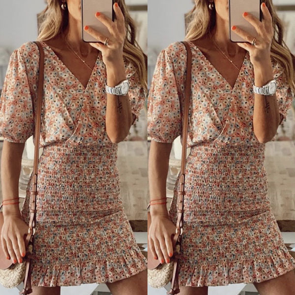When in doubt,then make your eyes focused on this wonderful piece,you could hardly go wrong with this beautiful dress! Features vibrant floral print details,he elastic waist and fit silhouette design can showcase your slender figure,while the v-neck and ruffle hem design will enhance your feminine appeal. From your daytime out to night dating,this dress is a good choice.
