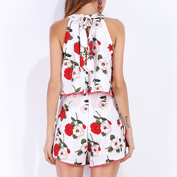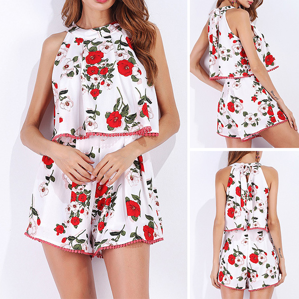 Easy to portray a fresh and sweet style through this romper. Boasts romantic and vibrant floral print,accompanied with sleeveless,