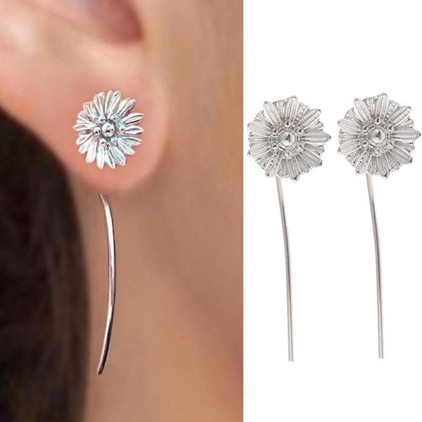 You can showcase your fresh and stylish vibes with the help of this pair of earrings. It comes with a classic yet stylish silver tone,the sunflower/calla shaped design makes it look so attractive and sweet. When you wear them,your charm can have a boost.