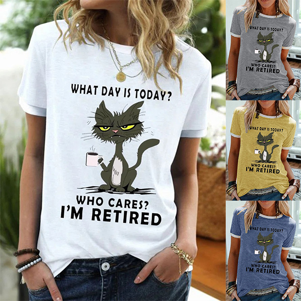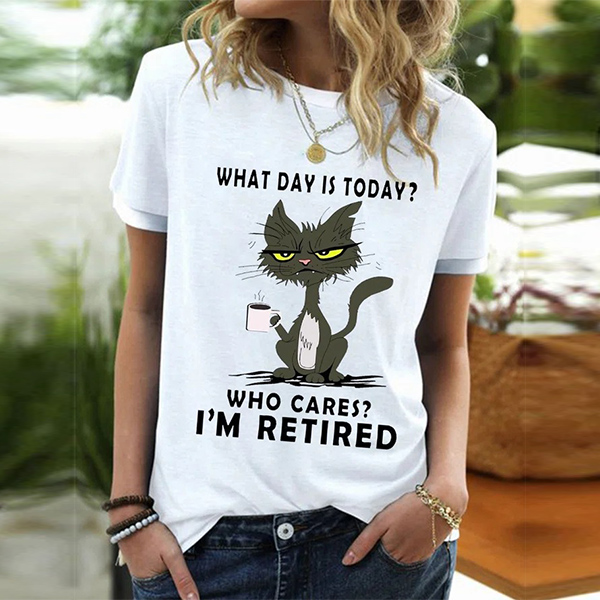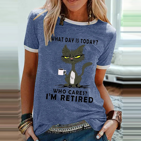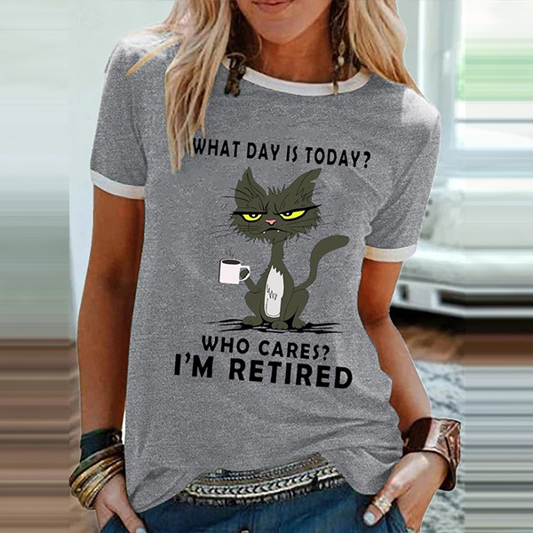 Funny Short-Sleeved T-Shirt: Casual Top with Retired Cat Print