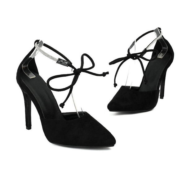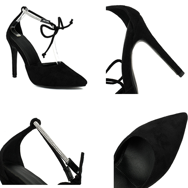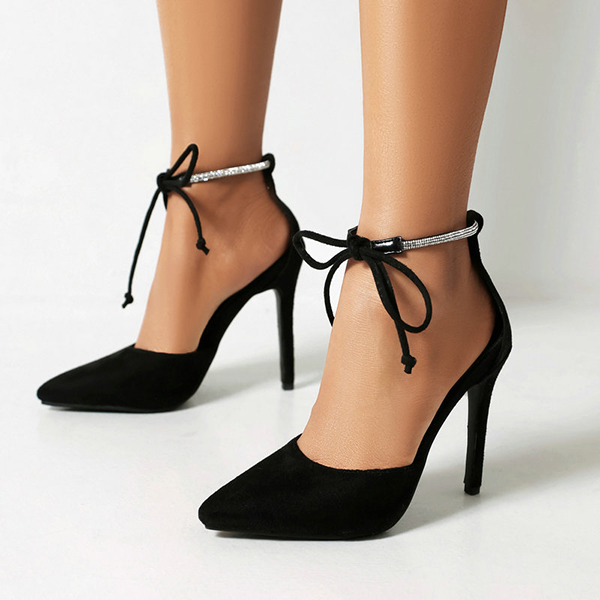 Glamorous Stiletto High Heels -Pointed Toe Design with Rhinestone Accents and Elegant Roman Cross Lace-Up Straps