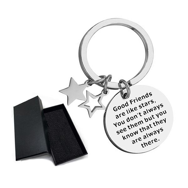 This key chain is engraved with the words like "good friends are like stars,you don't always see them but you know that they are always there",which stand for your real thoughts of the heart. It is the perfect gift for your besties and friends.